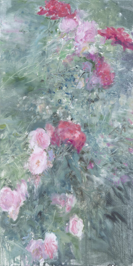 据何多苓介绍,自2020年以后,他便开始用油画与木炭粉画杂花写生,在此过程中,他有意借鉴了明代水墨大师徐渭的花鸟写意法,并曾专门于2021年赴浙江绍兴徐渭艺术馆观看学习了纪念徐渭诞辰500周年所举办的《畸人青藤——徐渭书画作品展》。